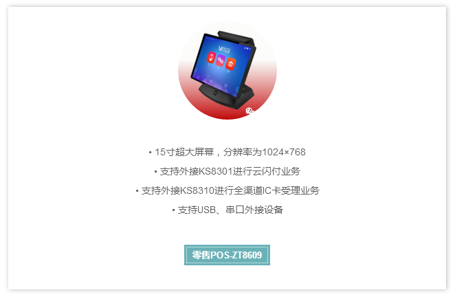 本次展會(huì)上,智能POS-KS8223、手持POS-ZT8225、零售POS-ZT8609以及金屬密碼鍵盤EPP 598M、596F等主打支付產(chǎn)品悉數(shù)亮相,其中零售POS-ZT8609及其針對(duì)當(dāng)?shù)厥袌鐾瞥龅南盗蟹桨赣葹槭艿疥P(guān)注。這是一款小店大連鎖綜合ERP管理終端,可支持連鎖門店的業(yè)務(wù)管理、互通,大大方便經(jīng)營者對(duì)旗下店鋪實(shí)施統(tǒng)一管理和業(yè)務(wù)統(tǒng)計(jì)。