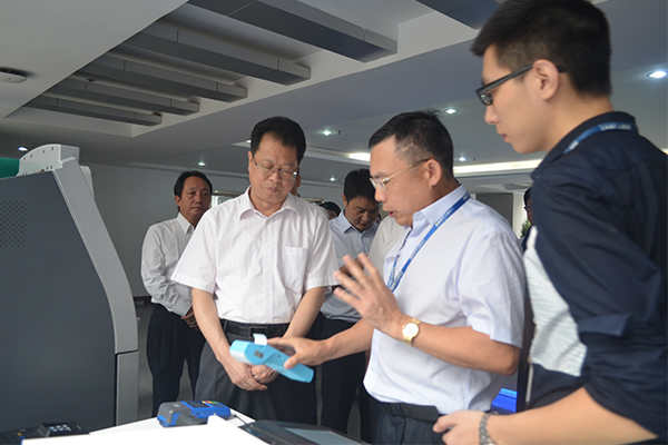 證通電子總裁曾勝?gòu)?qiáng)向張書(shū)記介紹智能POS-KS8223