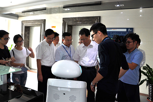 張書(shū)記現(xiàn)場(chǎng)體驗(yàn)證通銀行服務(wù)機(jī)器人-小僮